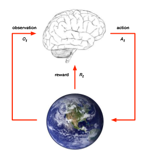 也就是环境。顾名思义,它就是相当于游戏中除主角之外的地图、怪物等集合。环境接收个体动作之后,对本身信息进行更新(也就是一个交互),并返回个体一个奖励。个体与环境的交互图如下: