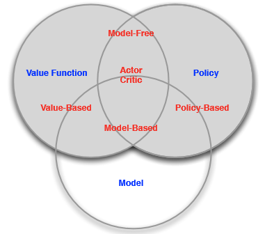 根据个体是否建立模型可分为model-based和model-free两大类,之后将会学习到还能进一步分类;根据使用的指标分为value-vased、policy-based和actor-critic.