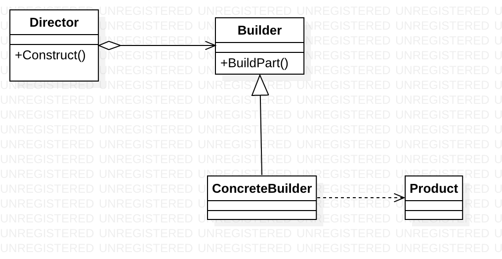 Product类可有可无,一般是实现了模板方法,有ConcreteBuilder返回。Builder是抽象类,规范产品的定义,具体实现由ConcreteBuilder执行,Director是Builder的使用。