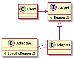 在上述类图中,有三种角色:Target目标角色、adaptee源角色和adapter适配器角色。