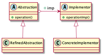 Abstraction抽象化角色定义角色行为并保存一个对实现化角色的引用;